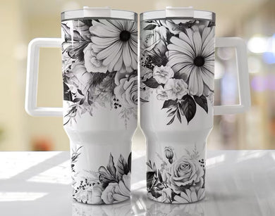 16 oz. Black & White Floral Pig Libbey Glass Tumbler