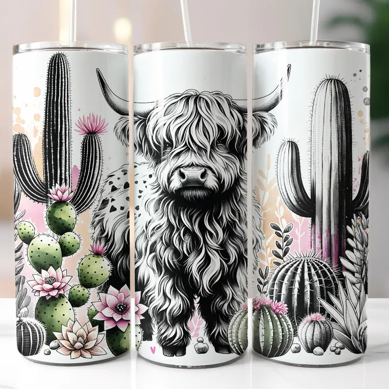 Highland Cow and Cactus Tumbler