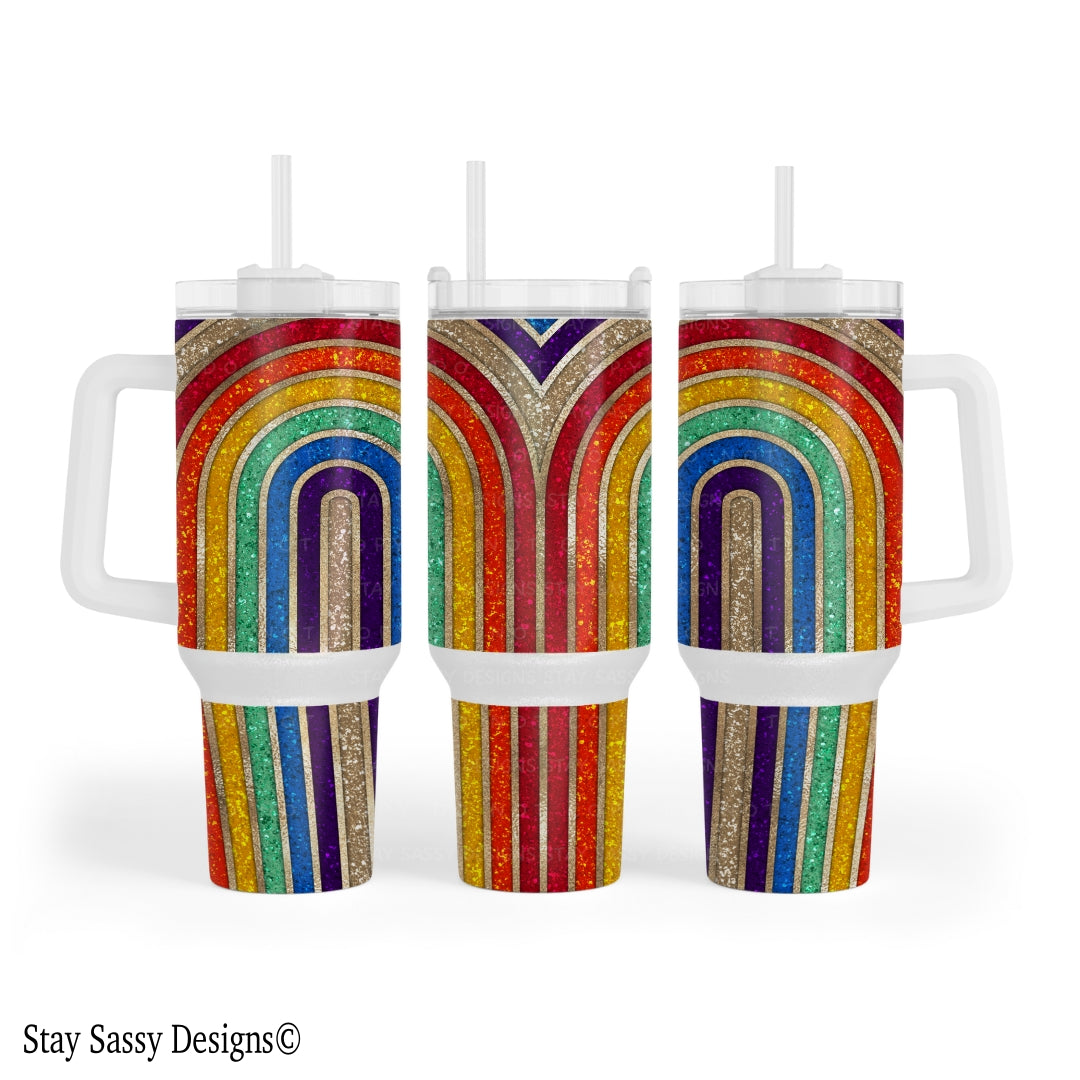 40 oz. Glitter Rainbow Tumbler w/Handle