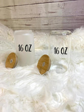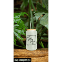 These beauties are glass tumblers that come with a bamboo lid and plastic straw. They are great for summertime! They come in 12 oz, 16 oz, and 20 oz.