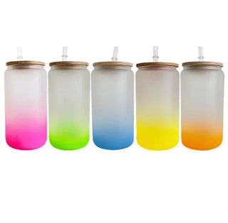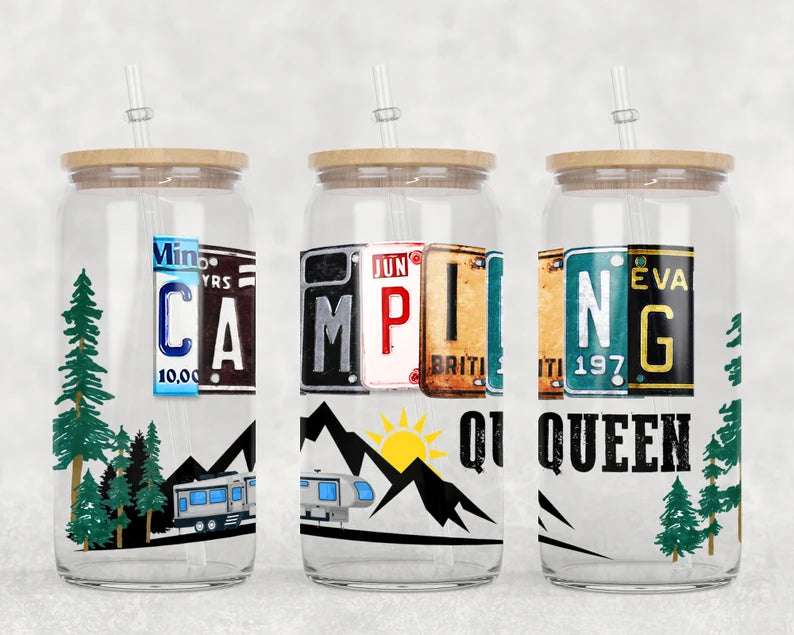 These beauties are glass tumblers that come with a bamboo lid and plastic straw. They are great for summertime! They come in 12 oz, 16 oz, and 20 oz.