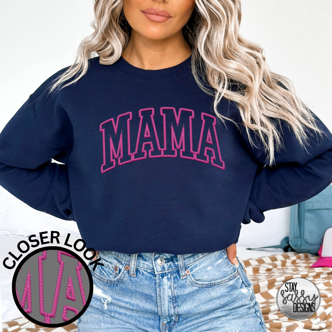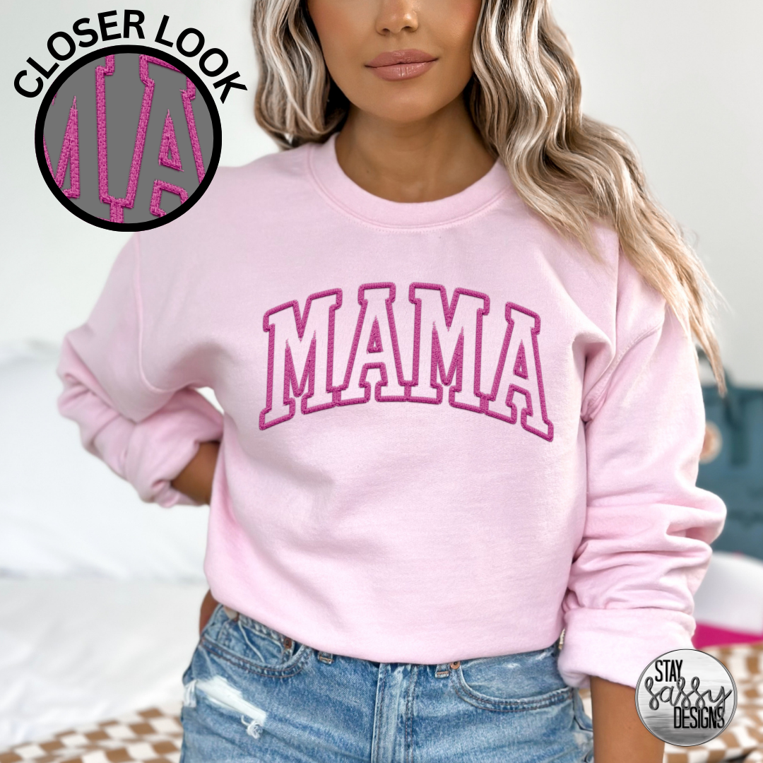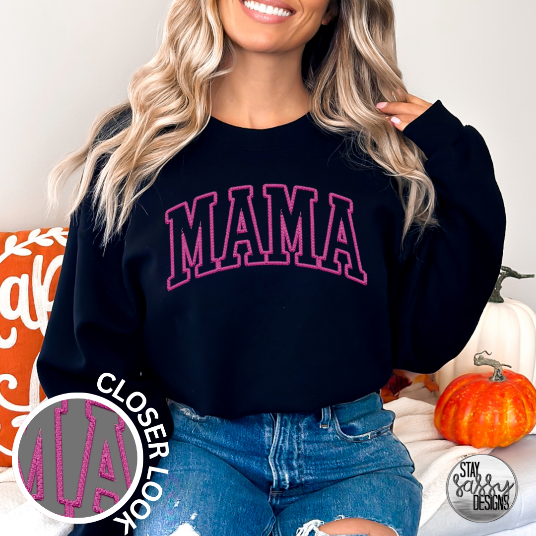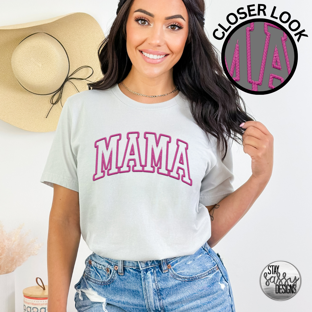 Faux Embroidered Pink Mama (Multiple Shirt Styles)