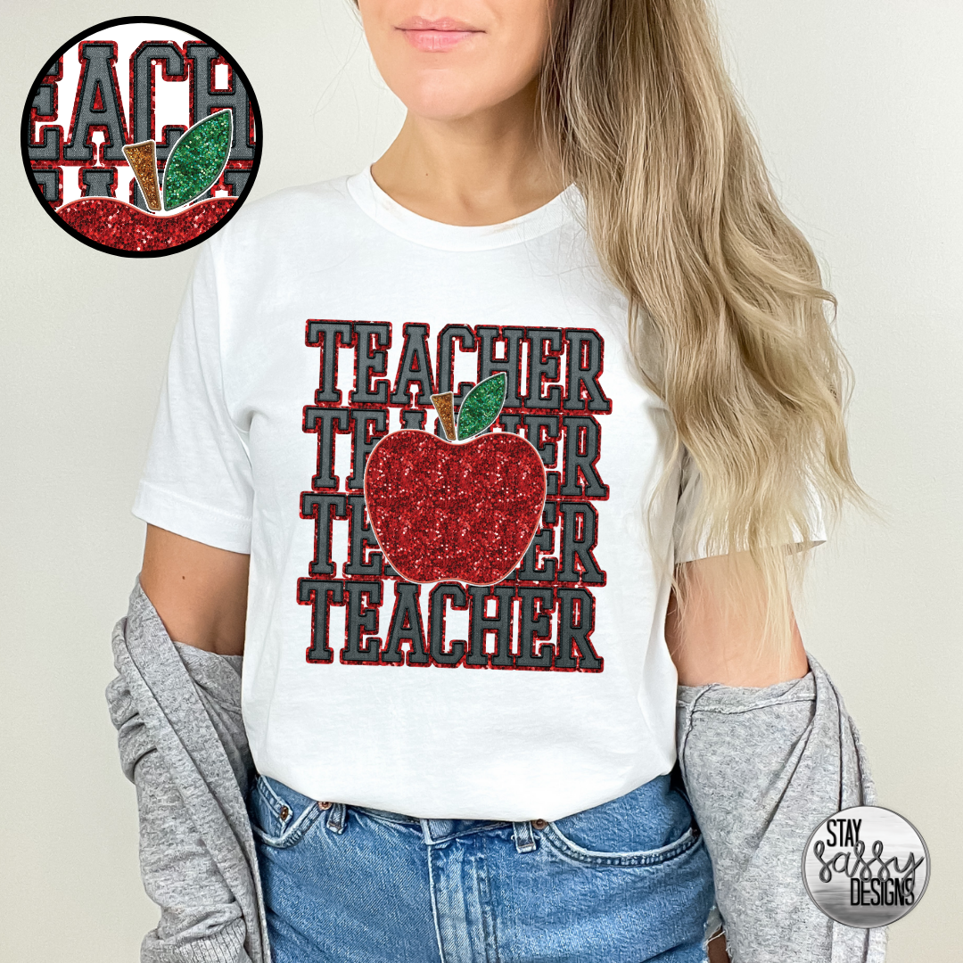 Faux Glitter Teacher Apple (Multiple Shirt Styles)