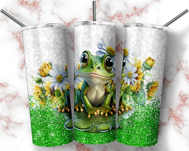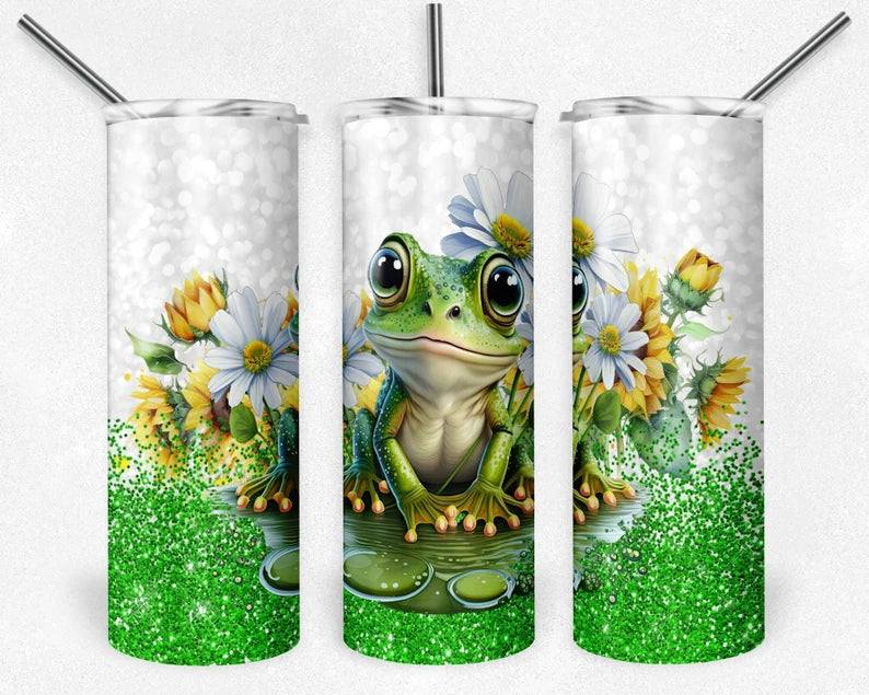 This Frog Glitter Tumbler is perfect to take with you on your summer adventures! Decorated with sunflowers and daisies, it will bring beauty and joy to every day. This cute and sparkly tumbler is perfect for your iced tea or lemonade. Make your summer even brighter with this lovely tumbler!