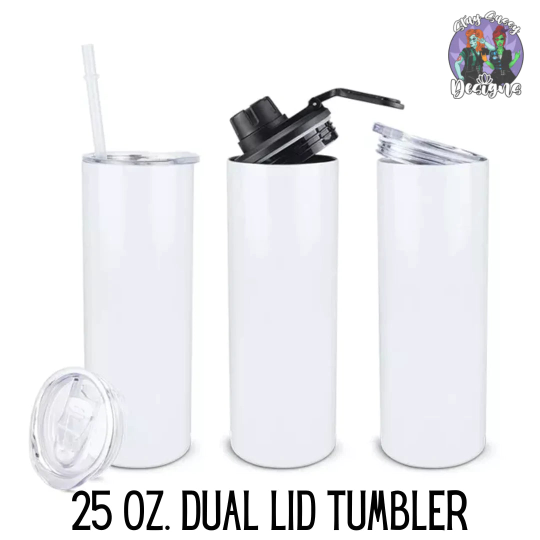 ⭐ 25 oz. Dual Lid Tumbler - Matte Finish. Includes standard tumbler lid, screw top water bottle lid, and 1 straw