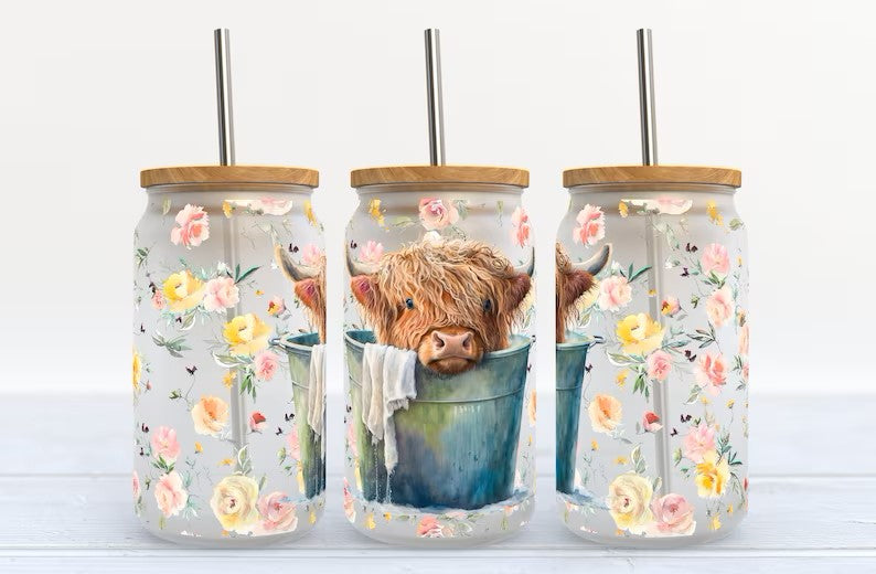 These beauties are glass tumblers that come with a bamboo lid and plastic straw. They are great for summertime! They come in 12 oz, 16 oz, and 20 oz.Contact us about getting your very own custom design on one! We can make that happen.
