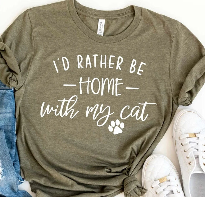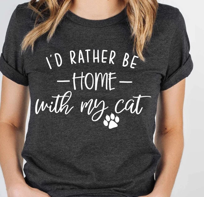 I'd Rather Be Home With My Cat Tee (Multiple Color Available)