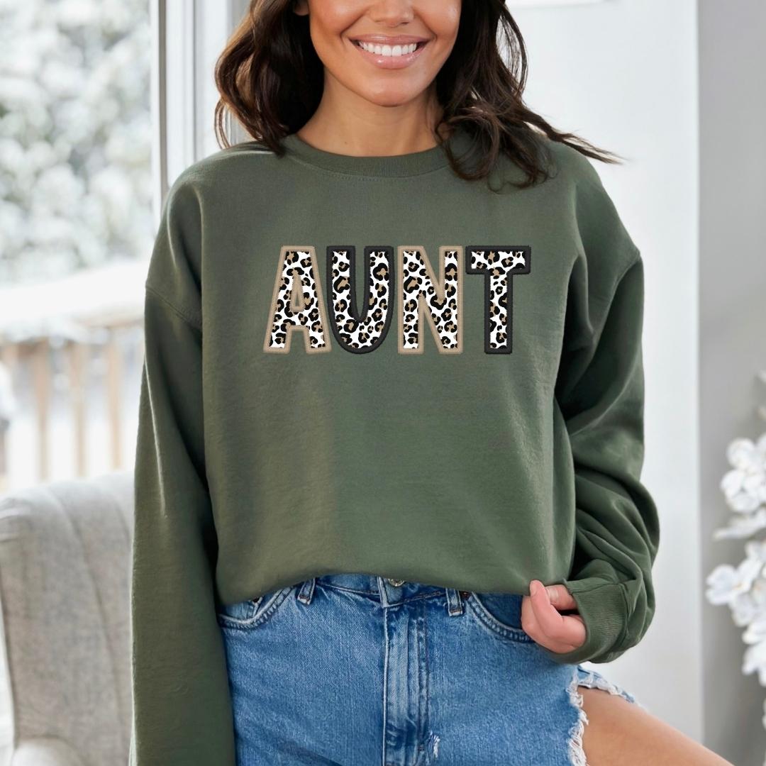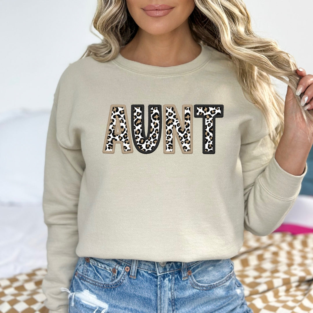 Neutral Leopard Print Faux Embroidered Aunt (Multiple Shirt Styles)