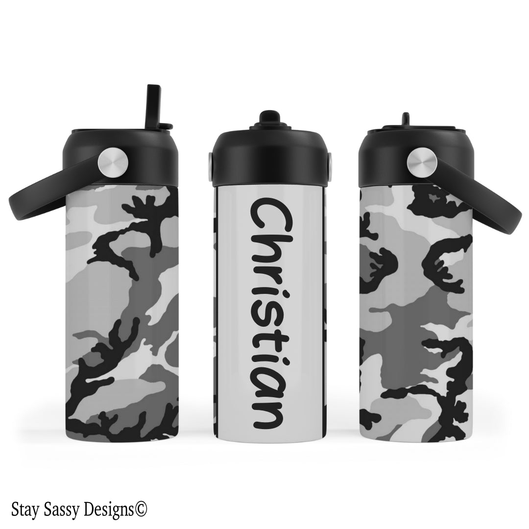 Personalized Grey Camo Water Bottle