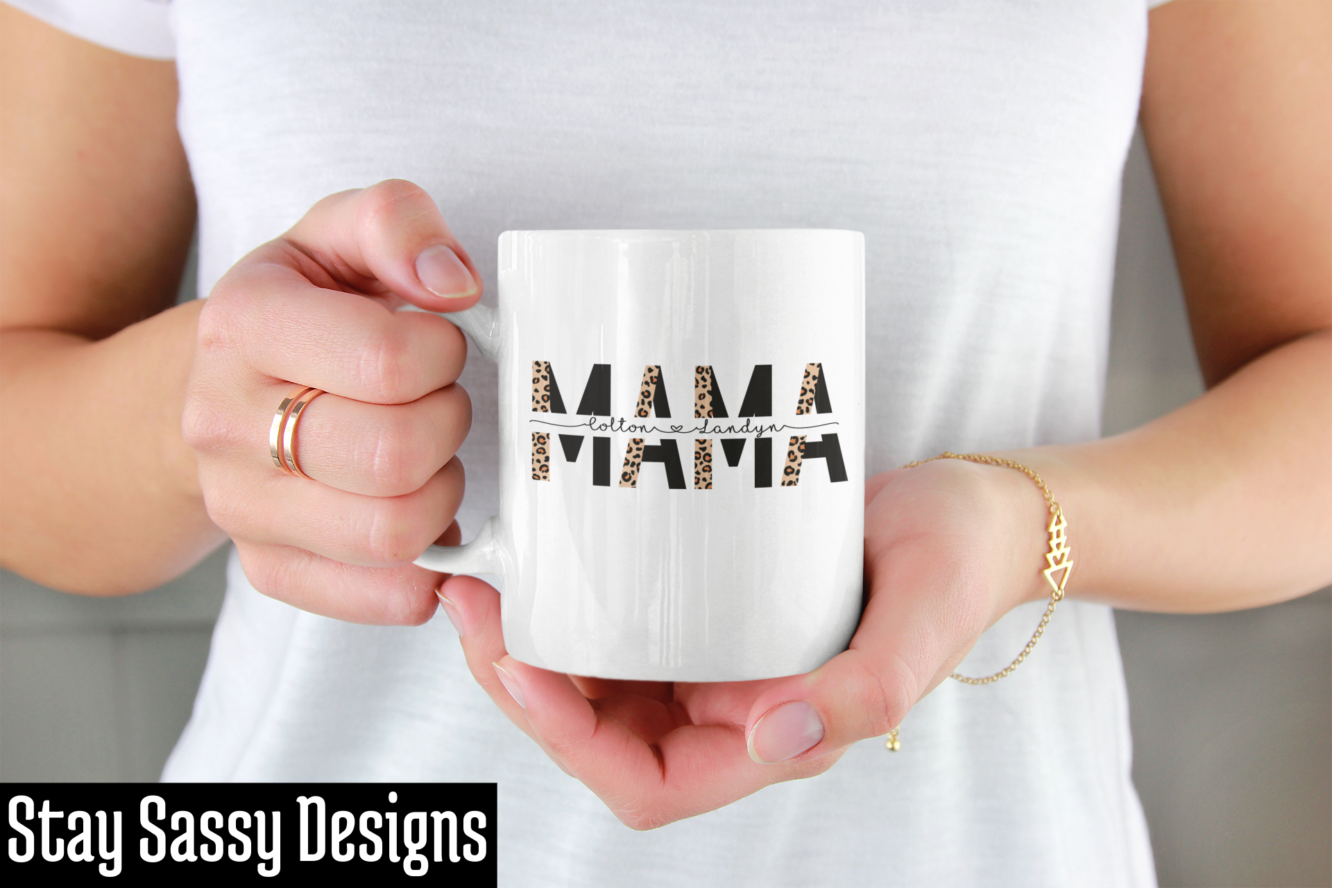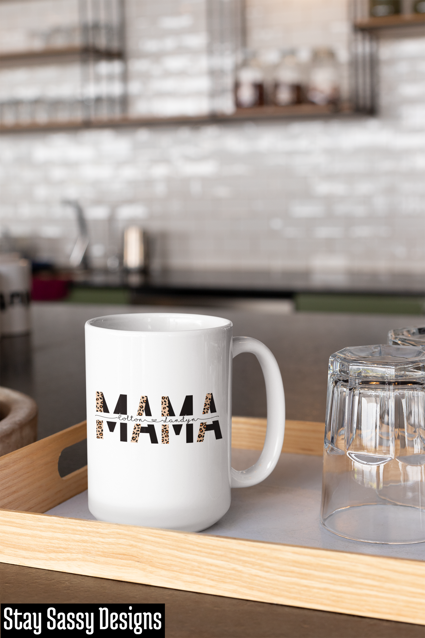 Enjoy a cup of tea or coffee in this personalized Leopard Mama Mug! It comes in either an 11oz or 15 oz size and features a stylish black and leopard print design with any name of your choice in the middle. It's a great way to show your appreciation for mom with a mug that stands out.