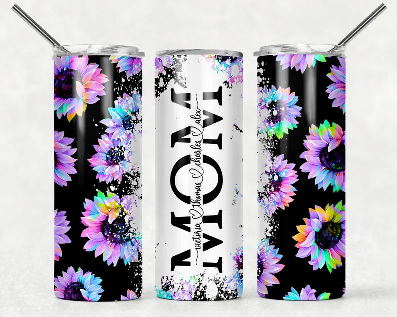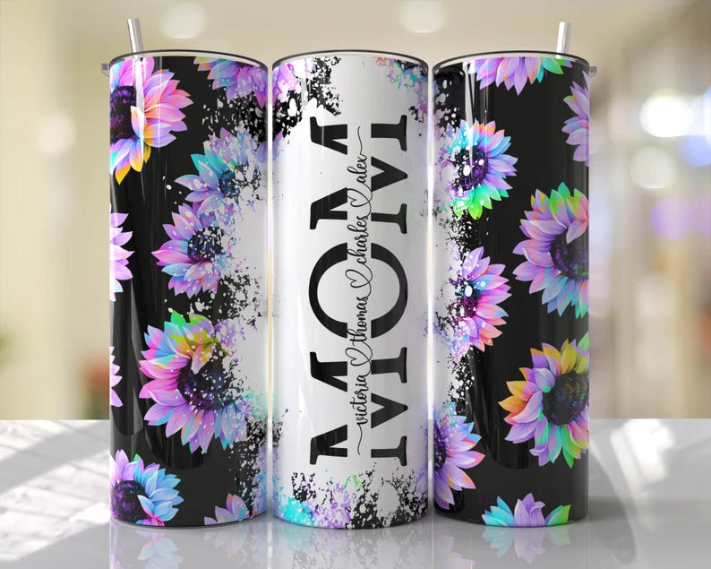 Personalized Multi-Colored Sunflower Mom Tumbler