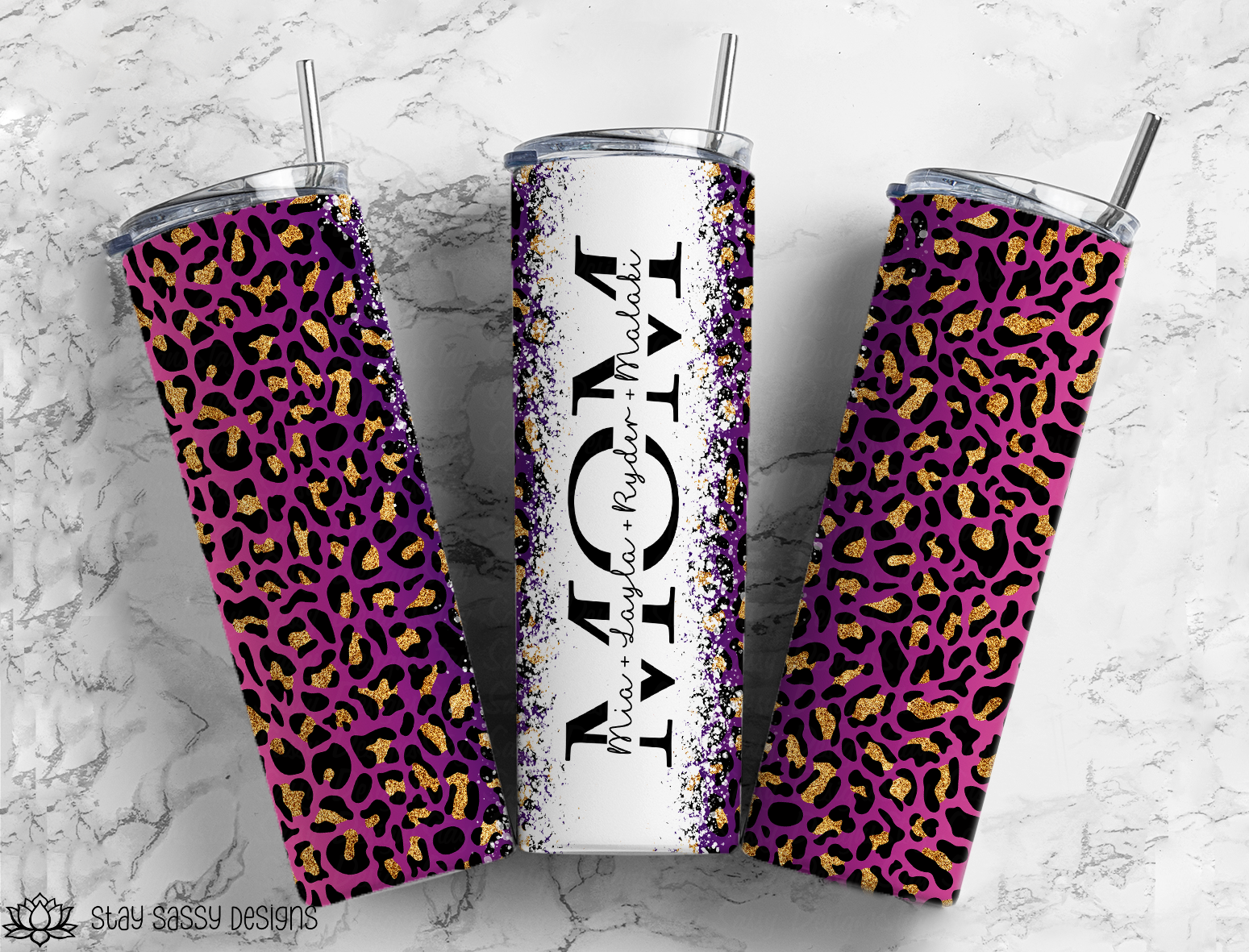 Personalized Pink & Purple Leopard Print Mom Tumbler