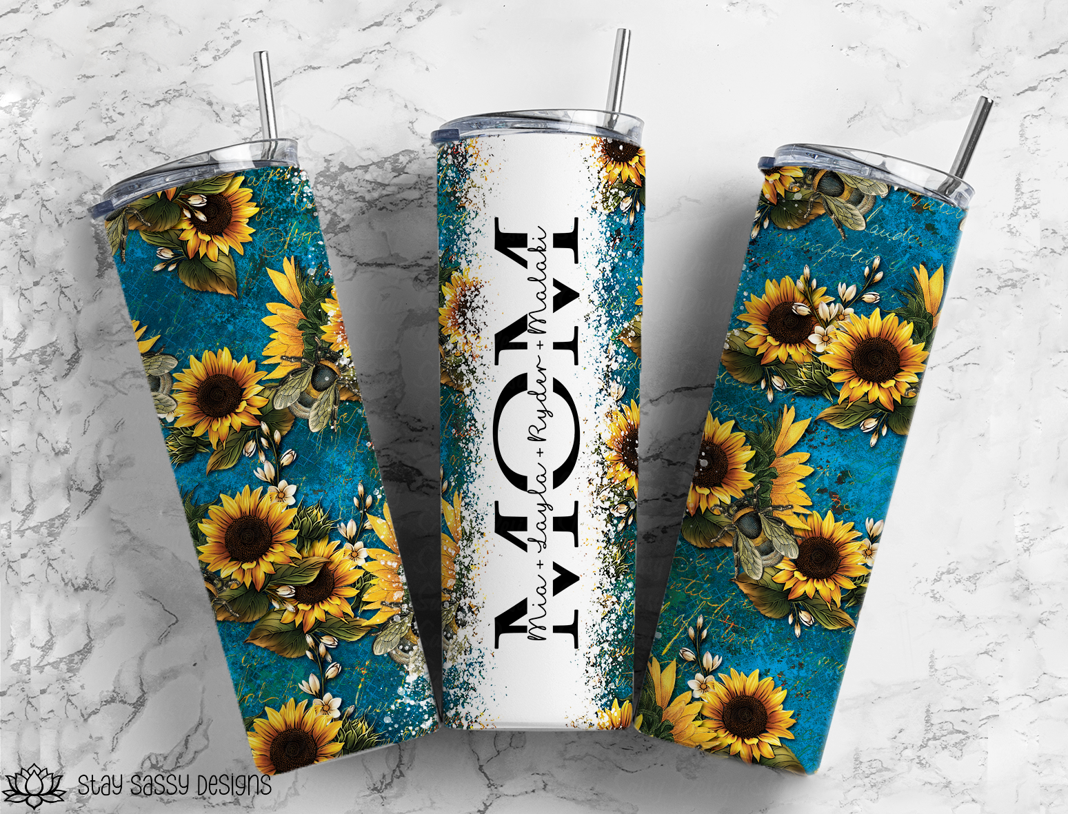 Personalized Turquoise & Sunflower Mom Tumbler