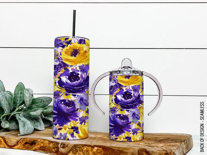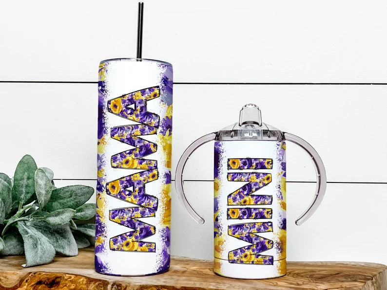 Purple & Yellow Floral Mama & Mini Tumbler Set