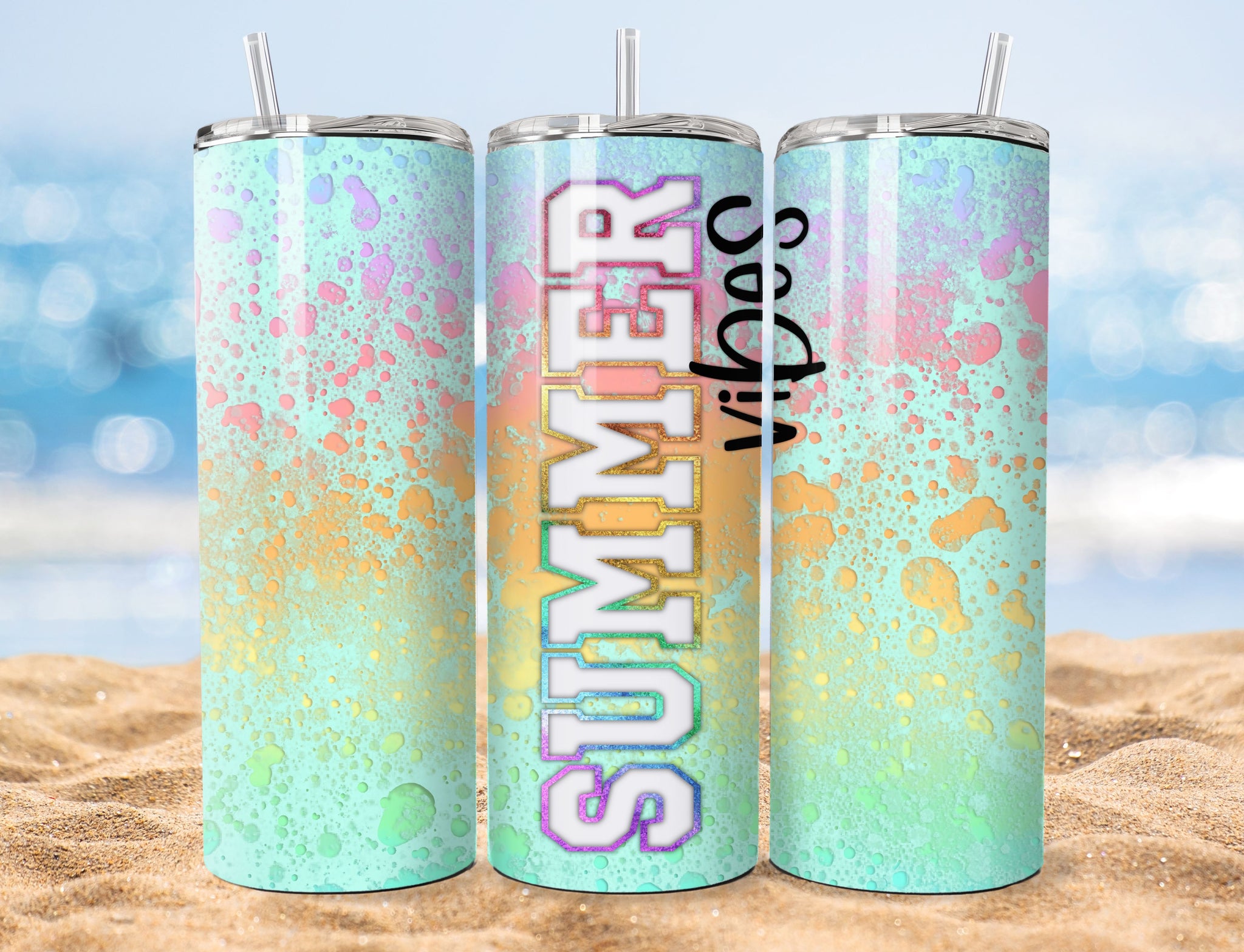 Get ready to sip your favorite drinks in style with our Summer Vibes Tumbler! This trendy tumbler is radiating coolness. The eye-catching bright power wash design brings an exciting burst of energy wherever you go. With multiple sizes to choose from, finding the right fit for your thirst-quenching adventures is a breeze. Thanks to its exceptional insulation, our tumbler can keep your drinks refreshingly cold or pleasingly hot for up to 12 hours. Say goodbye to lukewarm drinks and embrace the summer vibes with our tumbler!
