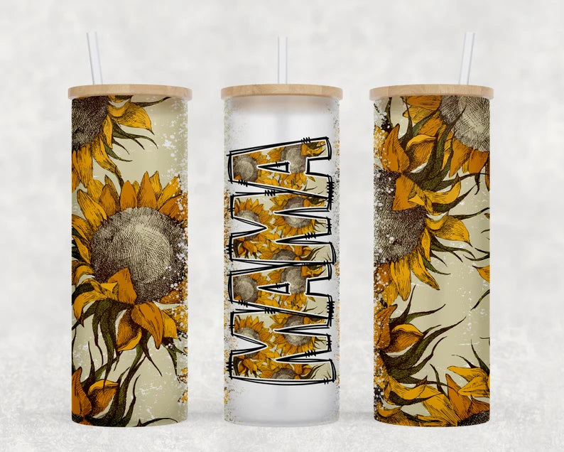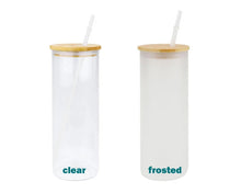 These beauties are glass tumblers that come with a bamboo lid and plastic straw. They are great for summertime! They come in 25 oz.