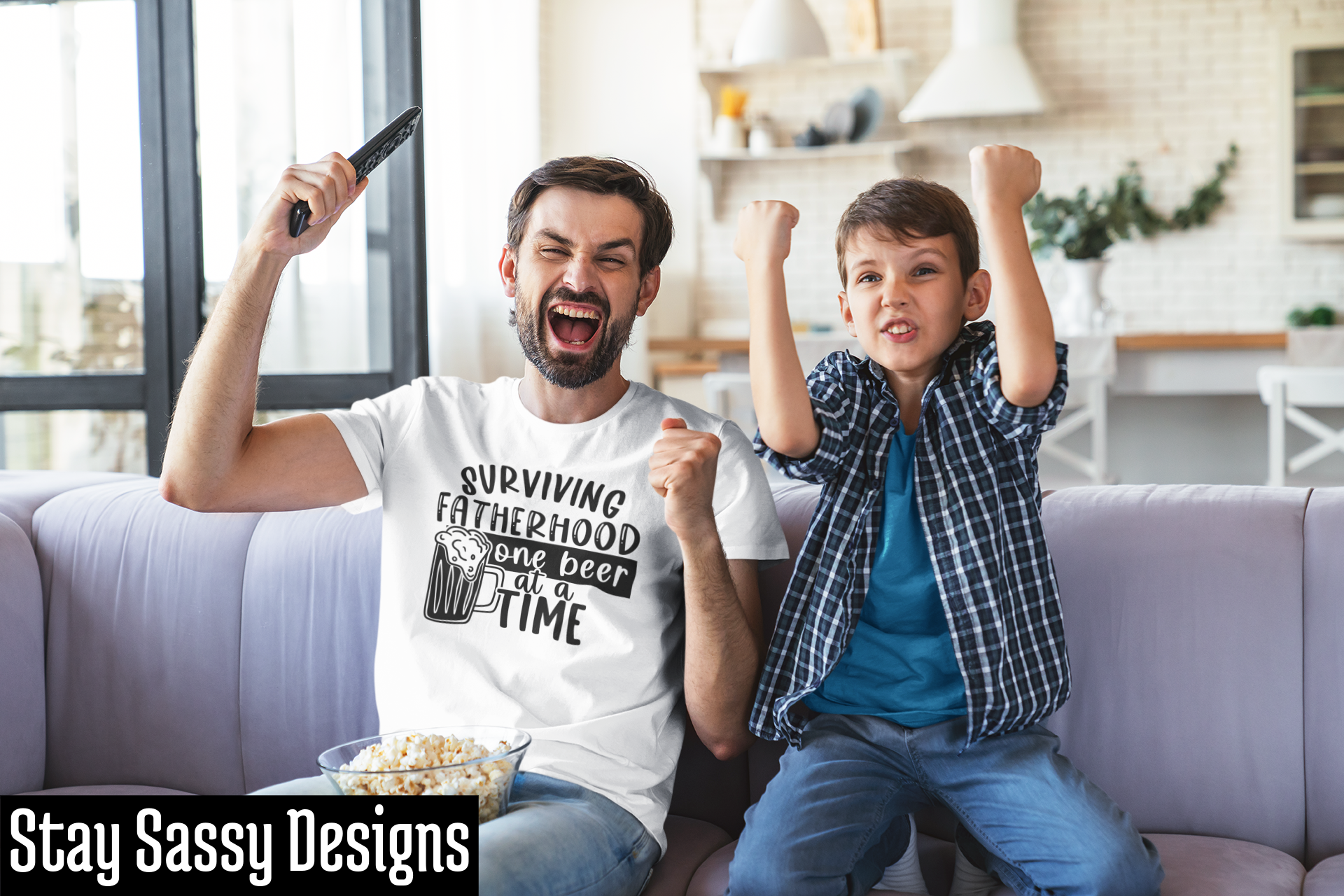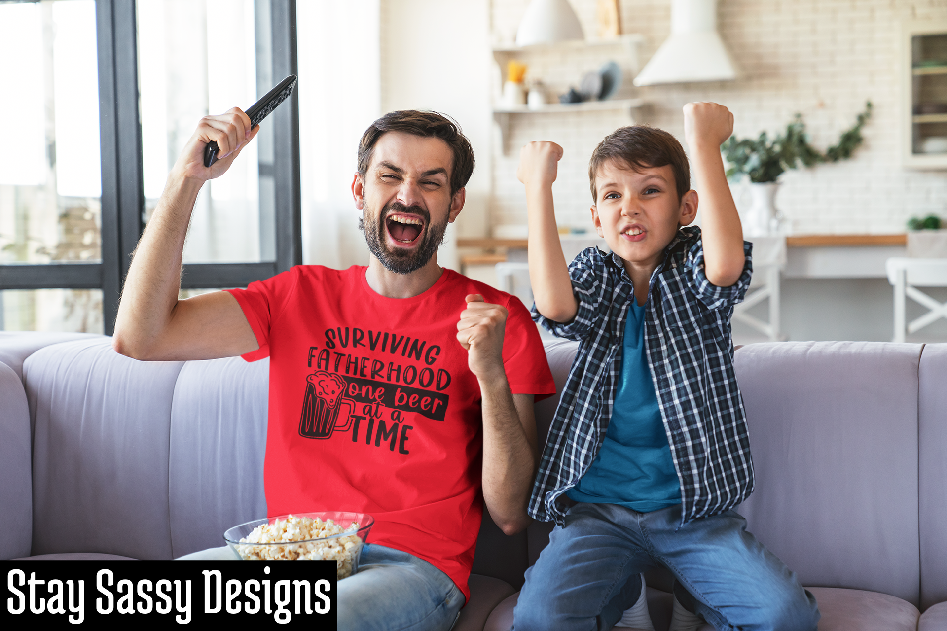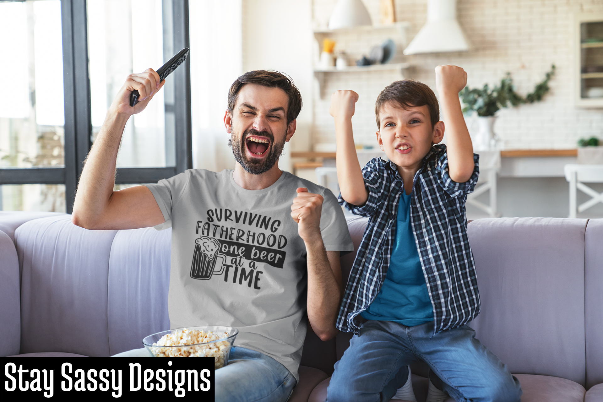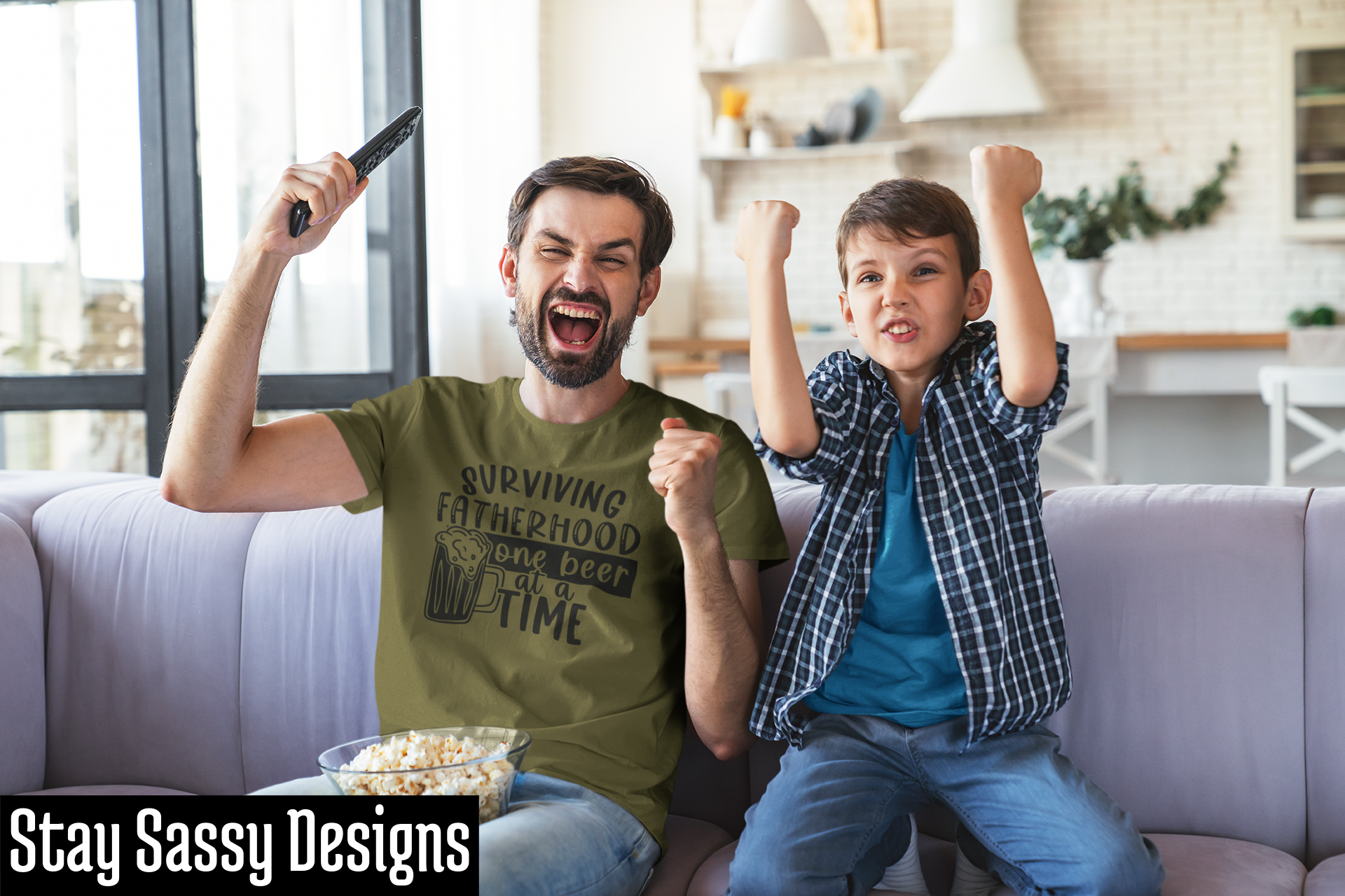No matter if you’re a newbie or an OG Dad, you deserve a cold beverage when you’re smashing this thing called fatherhood. That’s why our 'Surviving Fatherhood One Beer At A Time' T-shirt was created with the perfect balance of funny and comfortable! Get yours now in Red, Blue, Grey, White, or Military Green - here’s to the Dads!
