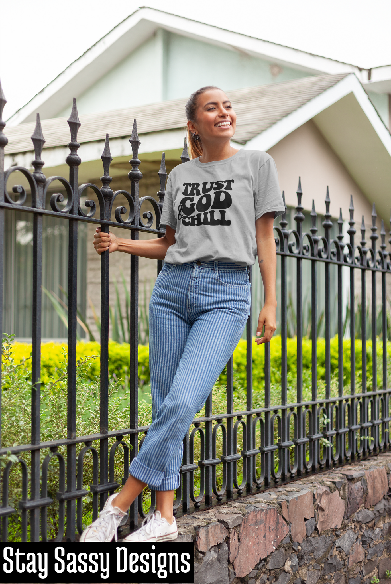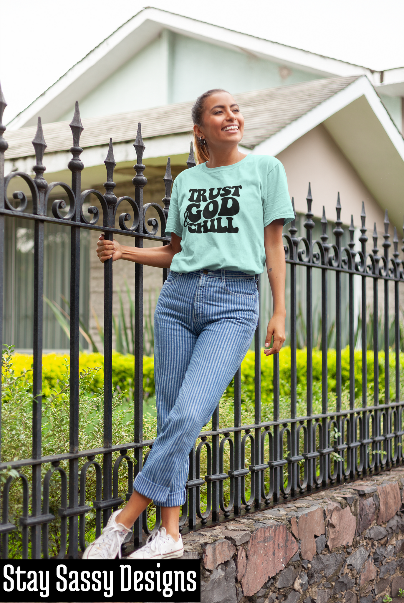 For the days when the only medicine you need is a little faith, get the Trust God & Chill Tee. Available in Grey, Mint, or White.
