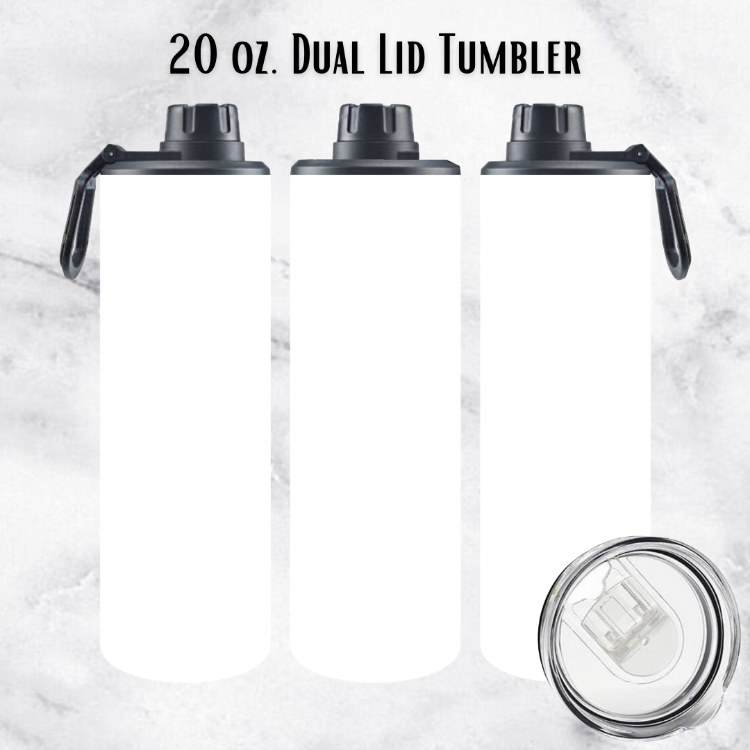 ⭐ 25 oz. Dual Lid Tumbler - Matte Finish. Includes standard tumbler lid, screw top water bottle lid, and 1 straw